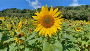 快晴の空にひまわりの黄色が映えて、見ているだけで前向きなエネルギーをもらえました。